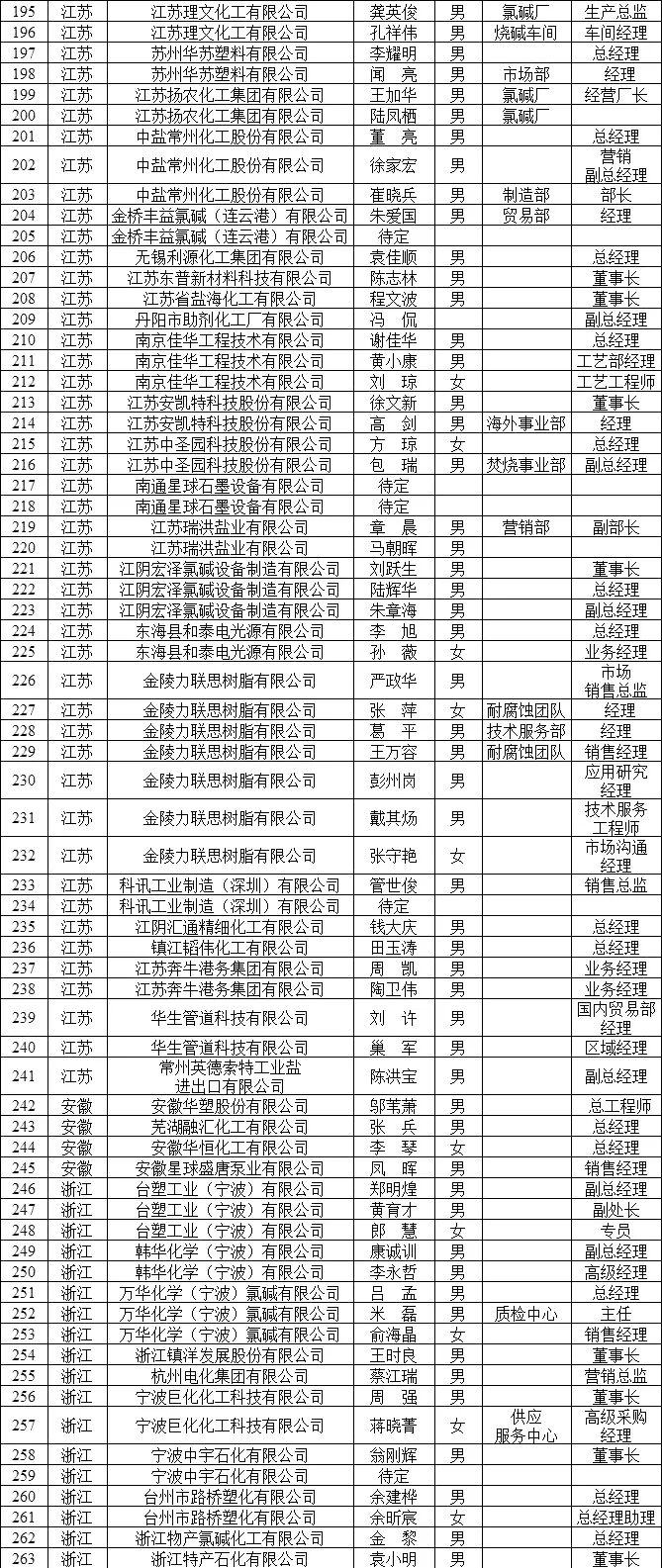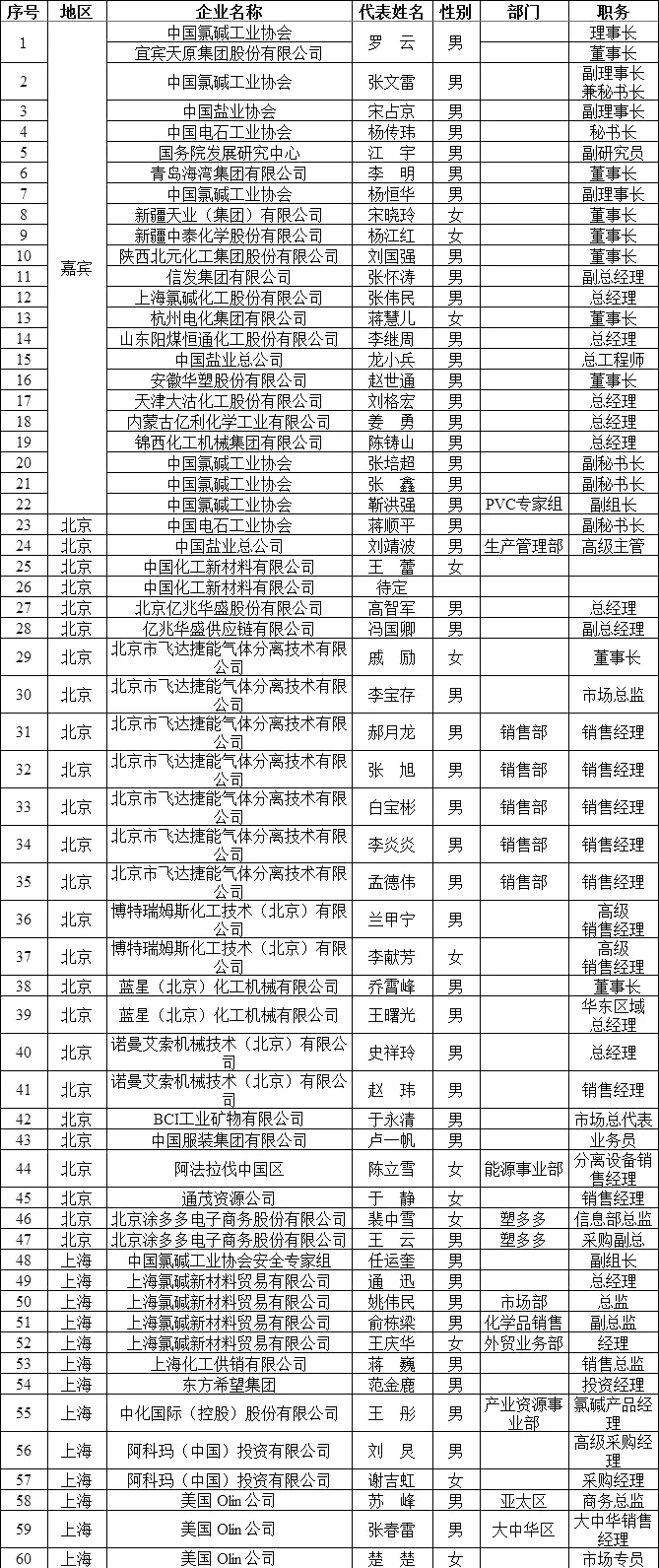 第23届中国氯碱论坛参会人员名单